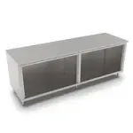 Work Table, cabinet base with open front, 120"W x 30"D, 16/300 stainless steel flat top, Stallion Safety Edge front, 18/430 stainless steel wrap, stainless steel legs with adjustable feet, NSFQ & A