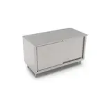 Work Table, cabinet base with sliding doors, 48"W x 24"D, 16/300 stainless steel top with 1-1/2" rear up-turn, Stallion Safety Edge front, 18/430 stainless steel body, stainless steel legs with adjustable feet, NSFQ & A
