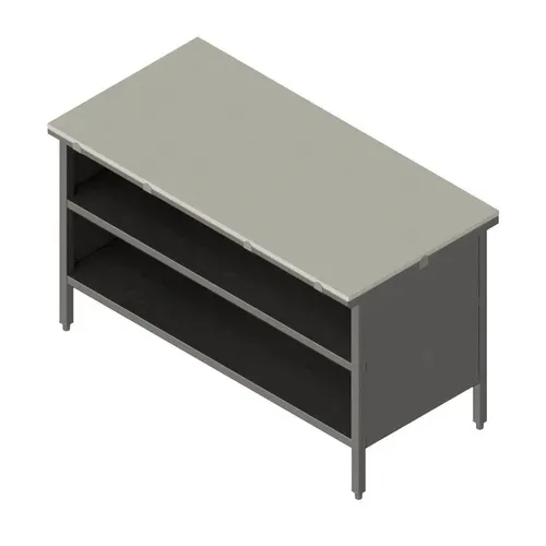 Work Table, cabinet base with open front, 48"W x 30"D, 3/4" reversible poly surface, Stallion Safety Edge front & back, 16/300 stainless steel top, stainless steel construction, undershelf, & 1" adjustable bullet feet, all welded set-up, NSFQ & A