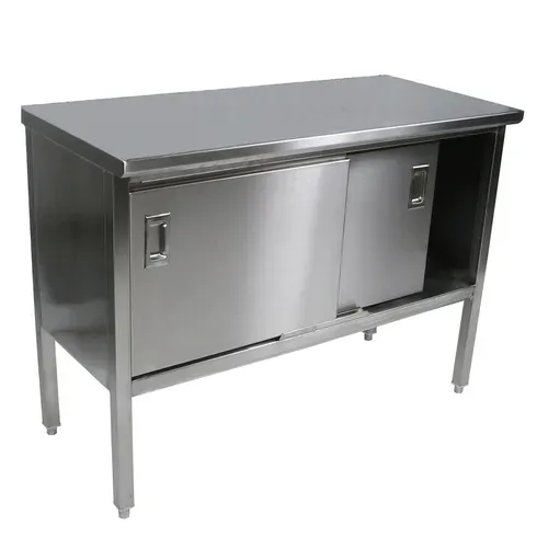 John Boos EBSS4-24120 Enclosed Base Work Table, with 14 Gauge Type 300 Stainless Steel Top, Sliding Doors and without Backsplash - 120.00"W x 24.00"D x 35.75"H