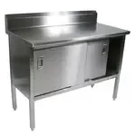 John Boos EBSS4R5-30144 Enclosed Base Work Table, with 14 Gauge Type 300 Stainless Steel Top, Sliding Doors and 5" Backsplash - 144.00"W x 30.00"D x 40.75"H