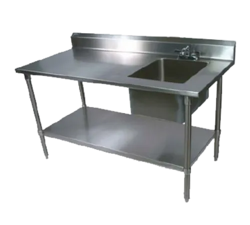 Work Table With Prep Sink, 48"W x 30"D x 40-3/4"H overall size, (1) 16"W x 20" front-to-back x 12" deep sink bowl on right, 5"H backsplash, includes 10" swing spout faucet 4" O.C., 16/300 stainless steel top, stainless steel legs & adjustable undershelf, 1" stainless steel adjustable bullet feet, NSF, CSA-Sanitation, KDQ & A