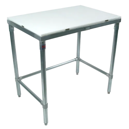 Cutting Table, 60"W x 36"D x 35-3/4"H overall size, 3/4" reversible flat poly top, galvanized legs, adjustable side & rear bracing, & bullet feet, NSF, CSA-Sanitation, KDQ & A
