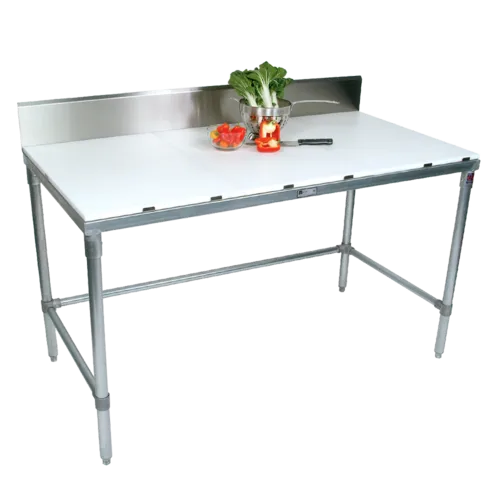Cutting Table, 36"W x 24"D x 41"H overall size, 3/4" reversible poly top with 6" stainless steel removable backsplash, galvanized legs, adjustable side & rear bracing, & bullet feet, NSF, CSA-Sanitation, KDQ & A