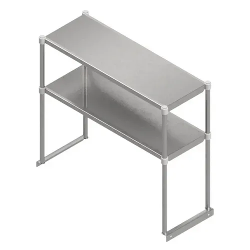 Overshelf, double, 84"W x 18"D, 16/300 stainless steel flat top, mounted 18" above table top, 12" between shelves, 1" stainless steel post, KD, NSFQ & A