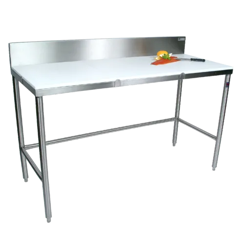 Trimming Table, 120"W x 30"D, 3/4" reversible poly top with 6" removable backsplash, stainless steel legs & bullet feet, side & rear bracing, welded set-up, NSFQ & A