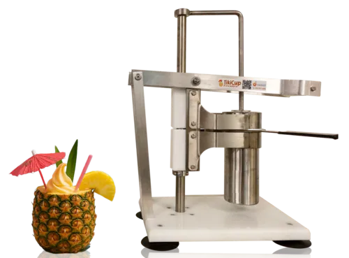 Juicernet’S Pineapple Tikicup™, 10"W X 15"D X 23 1/2"H, transforms fresh pineapples into tropical drink cups in seconds, spark social buzz, higher check averages, and happier lines, Made In USA, 1 year limited warranty, free shipping to the 48 Contiguous USAQ & A