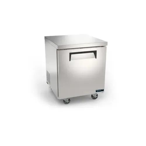 Kool-It Infinity Undercounter Refrigerator, one-section, 27"W x 29-1/2"D x 35-1/5"H, hinged solid door, (1) adjustable epoxy coated wire shelf, 33° to 40°F temperature range, electronic thermostat, digital LED temperature display, automatic defrost, stainless steel interior & exterior, 4" casters (lockable in front), rear mounted self-contained refrigeration, R290 refrigerant, 1/3 HP, 115v/60/1-ph, 2.2 amps, cETLus, ETL-SanitationQ & A