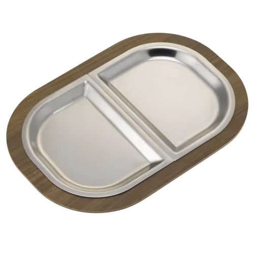 Service Ideas Original Thermo-Plate® Platter Large Holder, dark wood, stainless half insertsQ & A