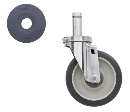 Quick Ship - Super Erecta® Cart-Washable Stem Caster, swivel, 5" dia., 1-1/2"W face, 300 lb. capacity, corrosion resistant, flat polyurethane wheel tread, stainless steel bearings, includes bumperQ & A
