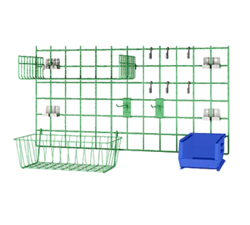 SmartWall Accessory Kit, for prep areas, consists of (2) H210K3 wire baskets (1) PBA-GSDK3 small grid shelf (1) DD3722A bin holder (1) MB30230B bin (2) PGHK6K3 6" prong hooks, & (6) HK23C standard hooks, packed in (1) cartonQ & A