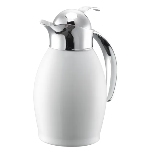 Service Ideas Nicollet Series Vacuum Insulated Carafe, stainless, 0.6-liter, push button lid, radiant whiteQ & A