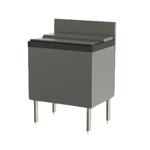 TSD Series Extra Capacity Underbar Ice Bin/Cocktail Unit, modular with cold plate, 24"W x 24"D, approximately 75-lb. ice capacity, 10-circuit aluminum cold plate concealed under bin liner, 6"H backsplash with 1" return at top, ABS plastic top ledge, 15" deep stainless steel ice bin, stainless steel front & sides, galvanized steel back & bottom, 1/2" NPS male drain, 1-5/8" tubular stainless steel legs with 1" adjustable thermoplastic feetQ & A
