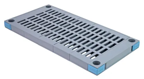 Millenia Shelf, 36"W x 18"D, up to 1000 lbs load capacity, removable open grid mat, all polymer, gray finish, NSF, Made in USAQ & A