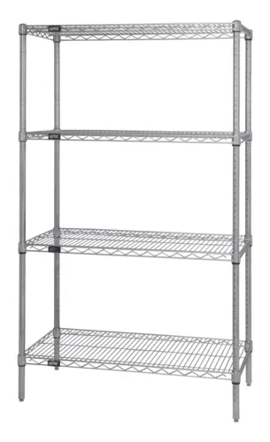 Wire Shelving Starter Kit, 36"W x 36"D x 54"H, 600 - 800 lb. capacity, includes (4) wire shelves & (4) posts, 304 stainless steel, NSF, shipped KDQ & A
