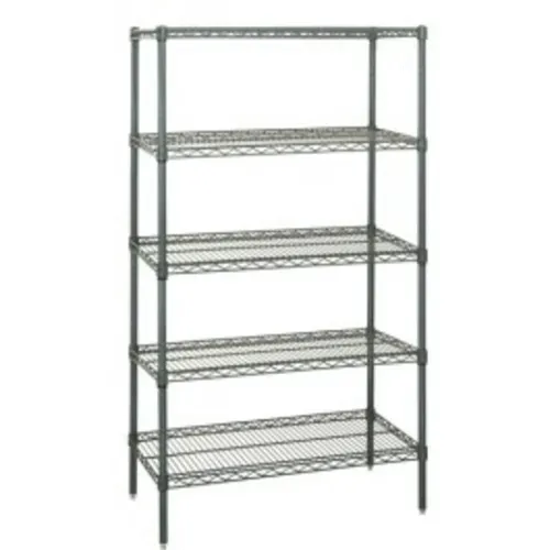 Wire Shelving Starter Kit, 48"W x 24"D x 86"H, 600 - 800 lb. capacity, includes (5) wire shelves & (4) posts, green epoxy antimicrobial finish, NSF, shipped KDQ & A