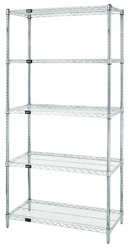 Wire Shelving Starter Kit, 72"W x 36"D x 86"H, 600 - 800 lb. capacity, includes (5) wire shelves & (4) posts, 304 stainless steel, NSF, shipped KDQ & A
