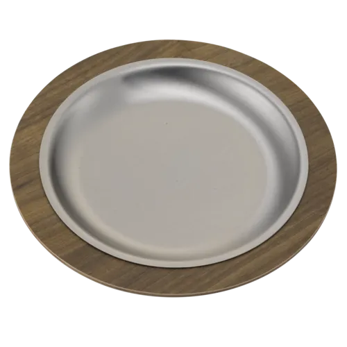 Service Ideas Round Thermo-Plate® Platter Small Holder, dark wood, stainless insertQ & A
