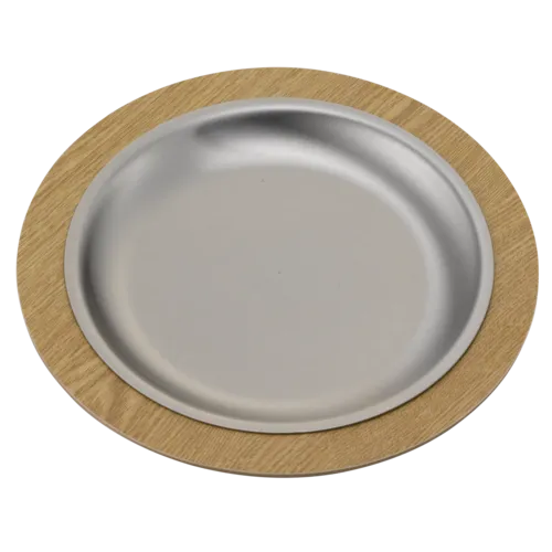 Service Ideas Round Thermo-Plate® Platter Small Holder, light wood, stainless insertQ & A