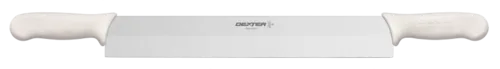 Sani-Safe® (S118-14DH) Cheese Knife, 14", doubled-handled, stain-free, high-carbon steel, non-slip, textured, polypropylene white handle, NSF Certified, Made in USAQ & A