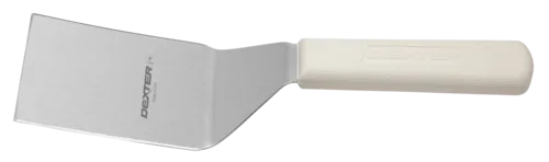Sani-Safe® (S286-4PCP) Hamburger Turner, 4" x 3", stiff, offset, stainless steel blade, textured, polypropylene white handle, Perfect Cutlery Packaging, NSF CertifiedQ & A
