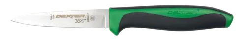 Dexter® 360™ (S360-3½G-PCP) Paring Knife, 3½", spear point, straight edge, stamped, DEXSTEEL™ stain free, high carbon steel, polypropylene/Santoprene® handle, green, NSFQ & A