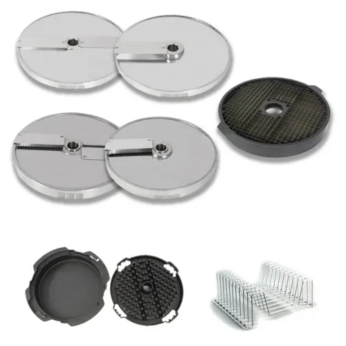 (1010473) Julienne Heavy Duty 5 Disc Package, for Vegetable processor, includes: 1/8” 3mm slicing disc (FC-3D), 5/16” 8mm julienne disc (FCE-8+), 5/16” 8mm slicing disc (FC-8D), DELICUT set 5/32” 4mm julienne disc and 5/16” 8mm dicing grid (FCE-4x4G and FMC-8D), 5/16” 8mm Quick Cleaner pusher (1010361), universal Quick cleaner base (1010359), and disc/grid storage holder (1010204)Q & A