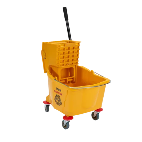 Commercial Mop Bucket, 35 qt., with side press wringer, dirt trap, non-marking casters, corrosion resistant, yellowQ & A