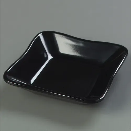 Carlisle - Deliware® Platter Inset Dish, 8-1/2 oz., 5-1/2", square, scalloped edge, low profile, stain/break/chip resistant, dishwasher safe, melamine, black, BPA Free, NSF (48 each minimum order)Q & A