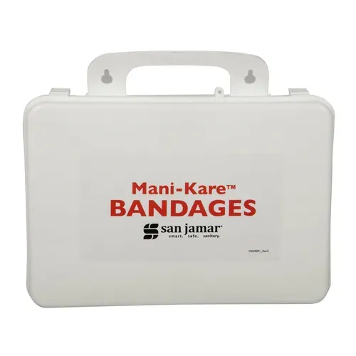 San Jamar - Mani-Kare® Bandages Kit, with storage box, includes: (2) boxes MK0901 (1) box MK0902 (1) box MK0903 (1) box MK0904 & (1) box MK0905, flexible cloth, blueQ & A