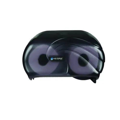San Jamar - Versatwin® Oceans® Bath Tissue Dispenser, 8-3/4"H x 6-3/4"W x 12-3/4"D, holds (2) 4-1/2" - 5-1/2" rolls, holds (2) 4-1/2" - 5-1/2" rolls, Infinity® System, impact resistant plastic, translucent black pearlQ & A