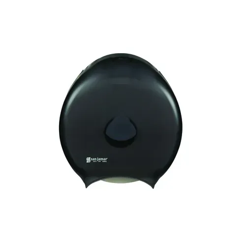 San Jamar - Classic® Quantum Bath Tissue Dispenser, 12-9/10"W x 5-4/5"D x 14-7/8"H, single roll, break & chemical resistant plastic, see-thru, gauge, transparent black, full swing, translucent black pearlQ & A