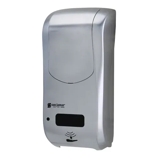 San Jamar - Summit Rely™ Hybrid Soap Dispenser, 5-1/2"W x 4"D x 12"H, 900 mL capacity, dispenses bulk liquid/lotion & hand sanitizer, electronic touchless, battery operated, manual operation when batteries are low, stainless lookQ & A