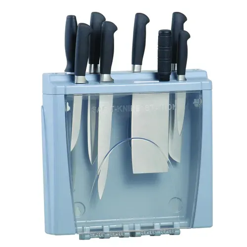 San Jamar - Saf-T-Knife® Station, 15" x 15" x 4-1/4", holds up to (8) knives, (1) cleaver & (1) knife sharpener (not included), dishwasher safe, polycarbonate clear front door, break resistant ABS plastic, NSFQ & A