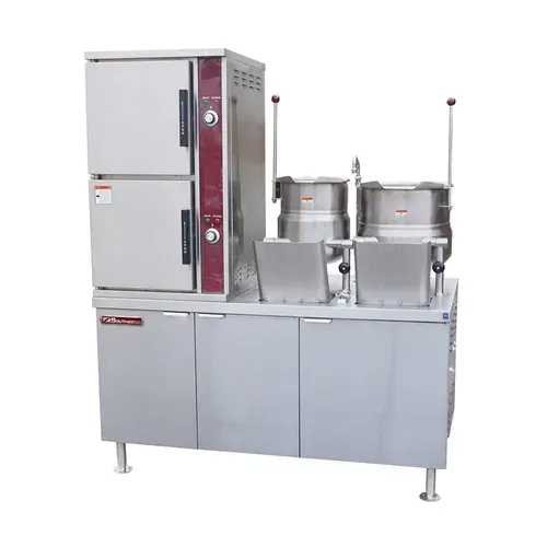 Convection Steamer/Kettle, direct steam, (2) compartment, (2) 6 gallon kettles, (3) 12" x 20" x 2-1/2" pan capacity per compartment, 60" cabinet base with (3) solid hinged doors, 60 minute timer per compartment, deck mount faucet valve, swing nozzle & integral sink, 316 stainless steel interior, 304 stainless steel construction, (4) 6" legs with adjustable flanged feet, 120v/50/60/1-ph, 4.0 amps, CSAus, NSFQ & A
