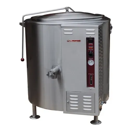 Stationary Kettle, gas, 40 gallon capacity, full jacket, thermostatic control, electronic ignition, direct immersion thermostat, water sight glass, cooking pilot light, vacuum/pressure gauge & low water indicator light, low water cut off, pressure relief valve, pressure control & gas shut-off valve, 2" draw-off, includes: perforated strainer, spring assisted stainless steel hinged cover & faucet bracket, 316 stainless steel interior liner, 304 stainless steel exterior, tri-leg, 130,000 BTU, CSA Star, CSA Flame, NSFQ & A