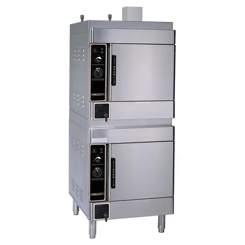 Sirius II Convection Steamer, Gas, (2) compartments, (4) 12" x 20" pan capacity per compartment, LP or Nat gas boilerless, auto water system, manual controls, aluminum cast cooking compartment, stainless steel exterior, preheated incoming water, clean water reservoir system, 6-9" legs, 52,000BTU, (2) 120V/60/1-PH, UL, ENERGY STAR®Q & A