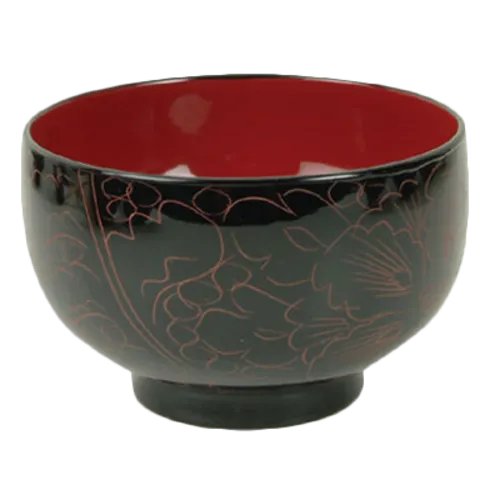 Soup/Rice Bowl, 9 oz., 4" x 2-1/2", decorative exterior, wood carved with clear finishQ & A