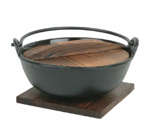 Japanese Noodle Bowl, 24 oz., round, swing handle, includes wooden lid & base, cast ironQ & A