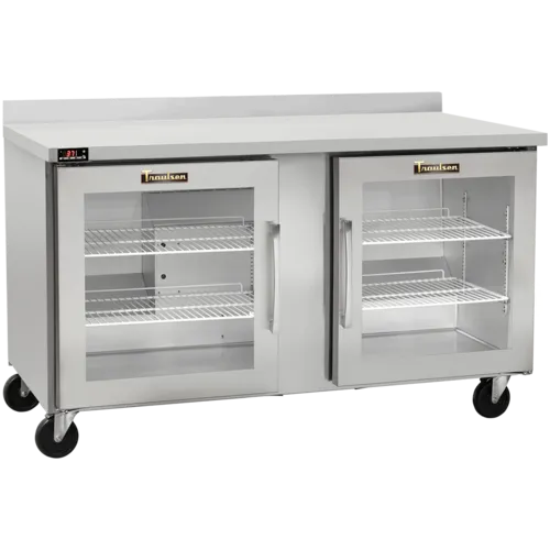 Centerline™ Compact Commercial Worktop Refrigerator, undercounter, two-section, 60" W, 16.94 cu. ft. capacity, self-contained rear-mount refrigeration, (2) right hinged glass doors (field reversible), electronic control with LED display, (2) epoxy coated shelves per section, 4" backsplash, stainless steel exterior, anodized aluminum interior, (4) casters, R450A refrigerant, 1/4 HP, 115v/60/1-ph, 3.6 amps, NEMA 5-15P plug, cETLus, ETL-Sanitation, ENERGY STAR® (more commercial refrigerators and freezers available)