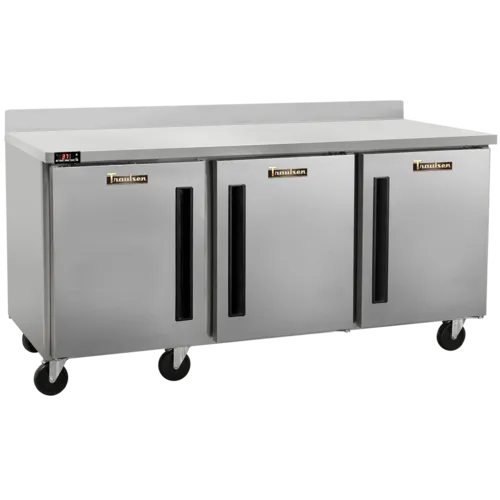 Centerline™ Compact Undercounter Worktop Freezer, three-section, 72" W, 18.80 cu. ft. capacity, self-contained rear-mount refrigeration, (1) left hinged/ (2) right hinged solid doors (field reversible), electronic control with LED display, (2) epoxy coated shelves per section, 4" backsplash stainless steel exterior, anodized aluminum interior, (4) casters, R448A refrigerant, 1/2 HP, 115v/60/1-ph, 5.0 amps, NEMA 5-15P plug, cETLus, ETL-Sanitation (more commercial refrigerators and freezers available)