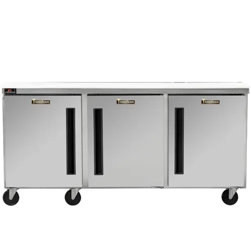 Centerline™ Compact Undercounter Refrigerator, Reach-in, three-section, 72" W, 18.80 cu. ft. capacity, self-contained rear-mount refrigeration, (1) left hinged/ (2) right hinged solid doors (field reversible), electronic control with LED display, (2) epoxy coated shelves per section, stainless steel exterior, anodized aluminum interior, (4) casters, R450A refrigerant, 1/4 HP, 115v/60/1-ph, 3.6 amps, NEMA 5-15P plug, cETLus, ETL-Sanitation, ENERGY STAR® (more commercial refrigerators and freezers available)