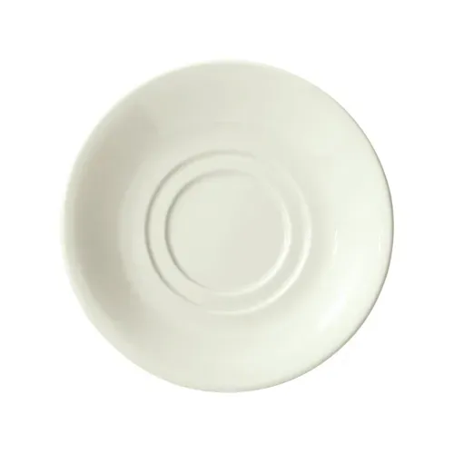 Saucer, 6-7/8"W x 6-7/8"D x 1"H, round, rolled edge, porcelain, American White (36 pieces/case)Q & A