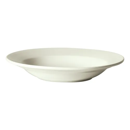 Plate, 8-7/8"W x 8-7/8"D x 1-1/4"H, round, rolled edge, porcelain, American White (24 each/case)Q & A
