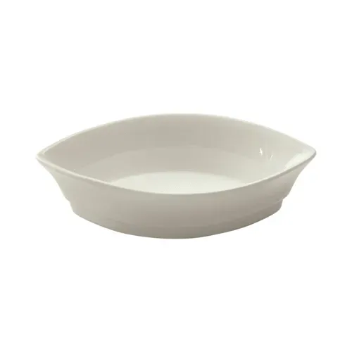 Sauce Dish, 2 oz., 2-3/8"W x 4-1/2"D x 1-1/4"H, boat shape, porcelain, American White (48 pieces/case)Q & A