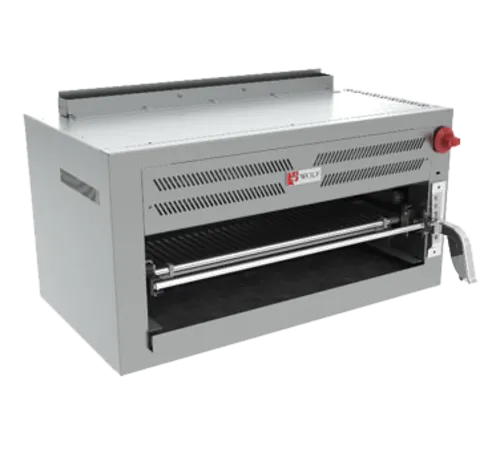 Salamander Broiler, Gas, 36" wide range, counter or wall mount, 30,000 BTU heavy duty infrared burner, infinite manual control, standing pilot ignition system, trigger grip positive rack positioning, stainless steel front, top & sides, 3/4" top gas connection with regulator, CSA, NSFQ & A